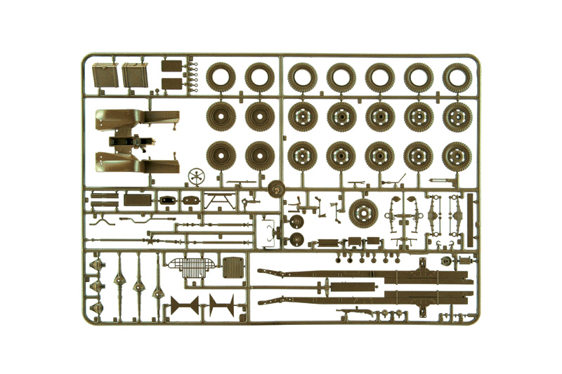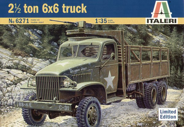 The Gmc 2 ½ ton truck was built in an exceptionally high number of units and can be considered the backbone of the logistical operations of the U.S. Army during World War II. Characterized by a very robust and reliable structure, its strength lay in its excellent off-road performance, thanks to its six-wheel drive and effective suspension design. It was produced in numerous variations, including the more common 'cargo' versions with open or closed cabins, 'long wheelbase,' and 'short wheelbase.' Additionally, various configurations, some developed directly in the field, were tailored for more specific and precise purposes. Its role was crucial in meeting the demanding logistical needs following the initial stages of the Normandy landings, involving the transportation and handling of substantial quantities of troops and materials.