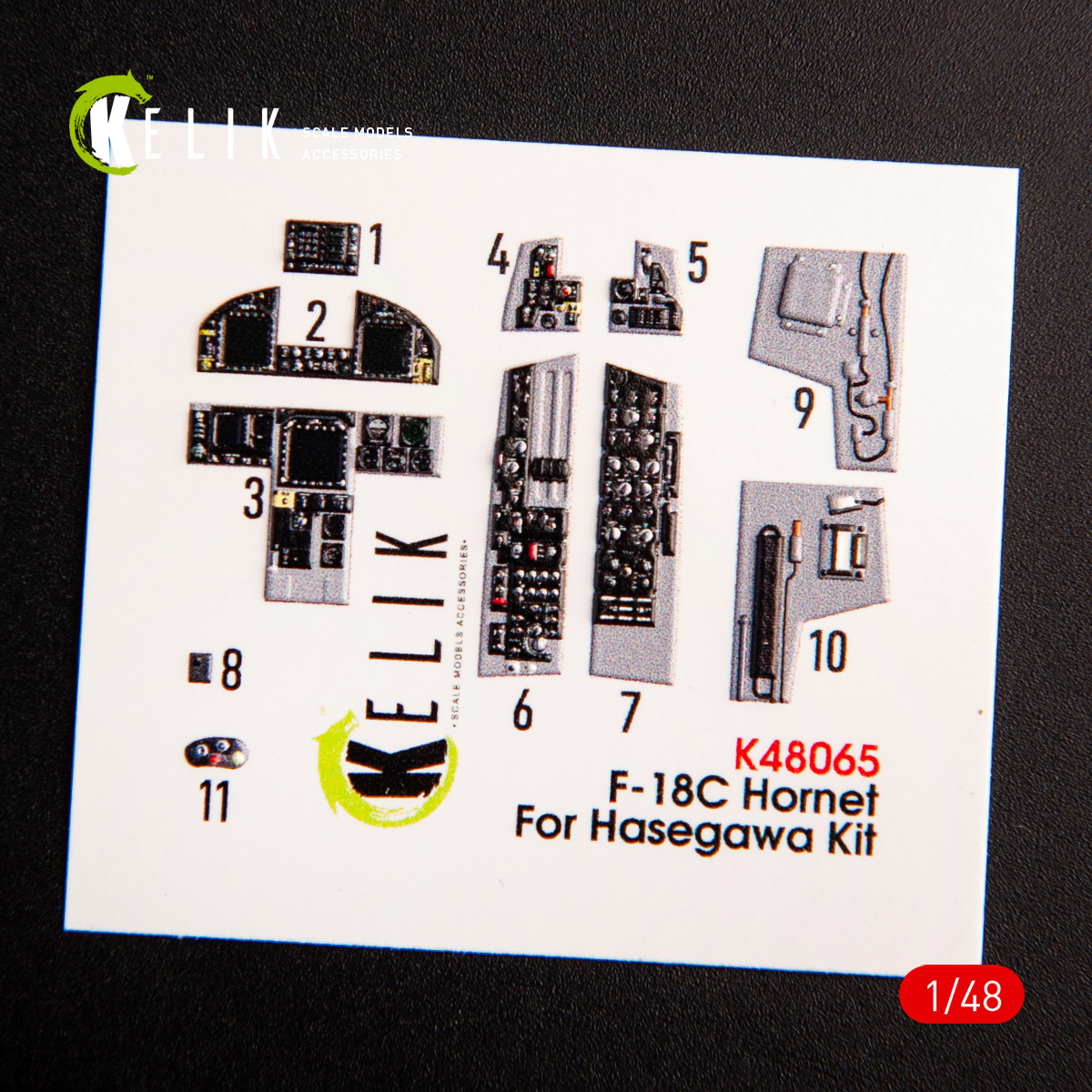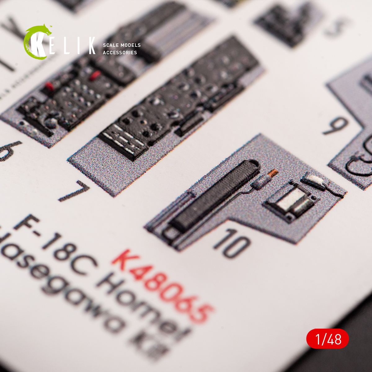 Kelik 3D Decals - 1/48 F-18C Hornet interior 3D-printed decals for Hasegawa kits