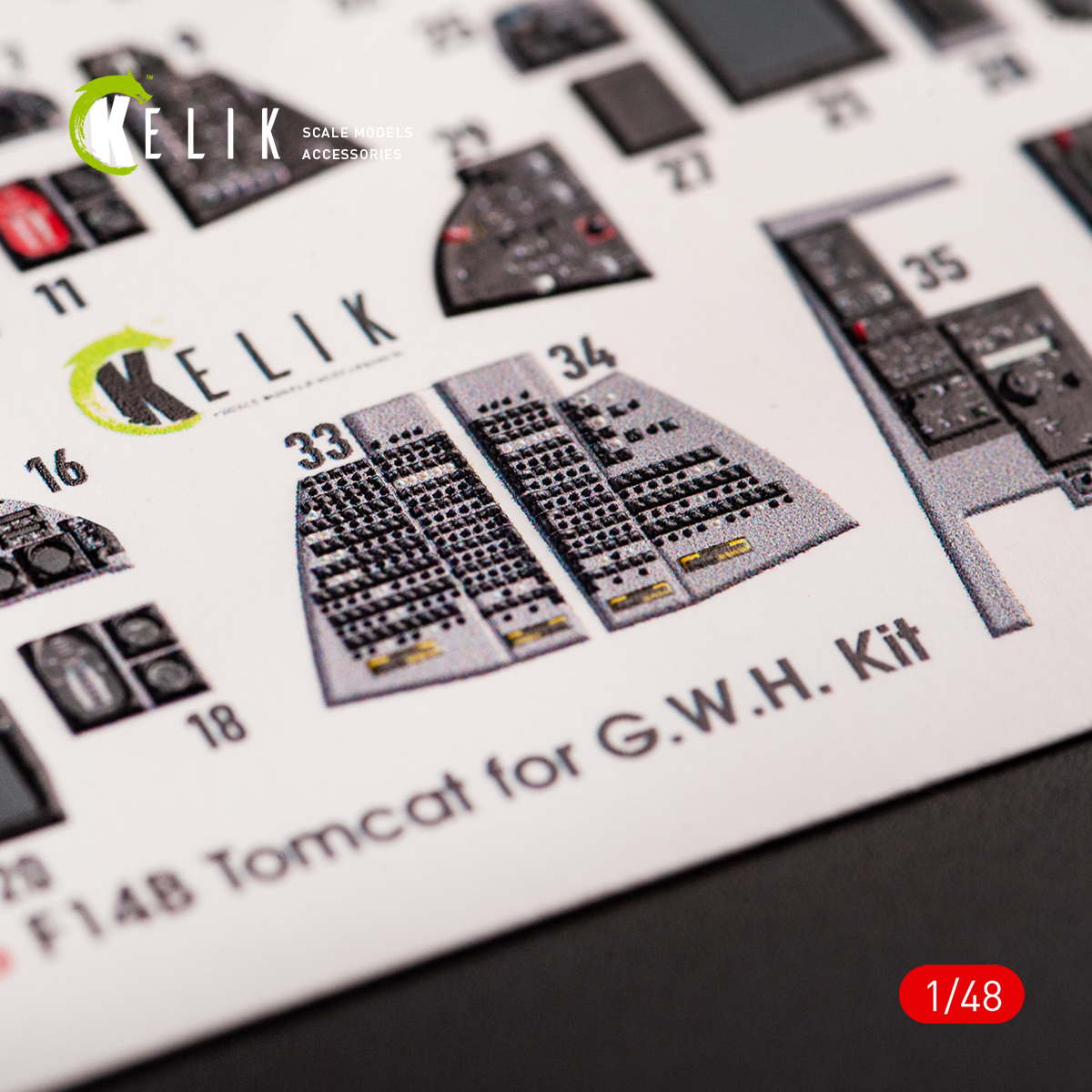 Kelik 3D Decals - 1/48 Grumman F-14B Tomcat interior 3D-printed decals for Great Wall Hobby kits