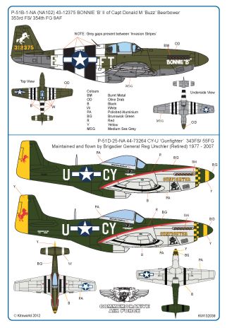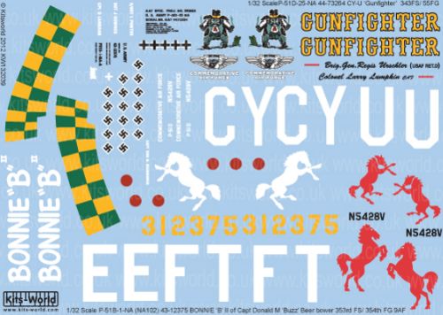 Kits-World - 1/32 North-American P-51B-1-NA (NA102) 43-12375 BONNIE 'B' II of Capt Donald M 'Buzz' Beerbower 353rd FS/ 354th FG 9th AF - North-American P-51D-25-NA 44-73264 CY-U 'Gunfighter' 343FS/ 55FGNorth-American P-51B-1-NA (NA102) 43-12375