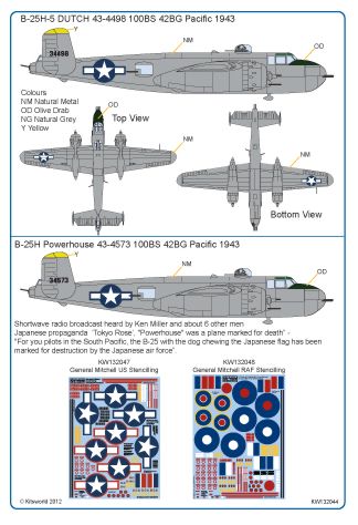 Kits-World - 1/32 B-25H-5 43-4573 'Power House' 100BS 42BG Pacific 1943 - B-25H-5 43-4498 'Dutch' 100BS 42BG Pacific 1943