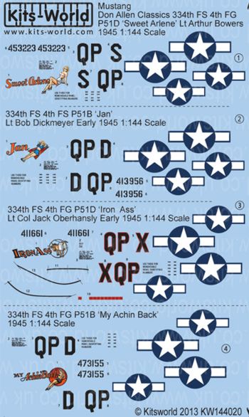 Kits-World - 1/144 North-American P-51D Mustang - 'Sweet Arlene' - 'Jan' - 'Iron Ass' - 'My Achin Back'