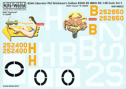 Kits-World - 1/48 Consolidated B-24H Liberator 834th BS, 486th Bg Phil Brinkman s Zodiacs Set 4 (2) 252532 2S-K Virgo , 252517 2S-G Pices . Individual aircraft markings only.