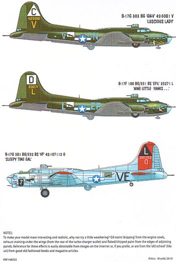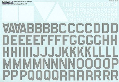 Kits-World - 1/48 Boeing B-17F/B-17G Flying Fortress General Markings Aircraft Id Numbers and Lettering (Camouflage Finish)