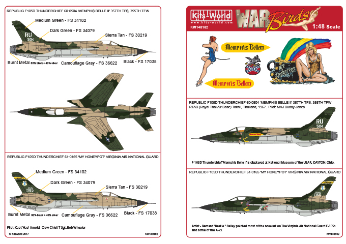 Kits-World - 1/48 Republic F105D Thunderchief 60-0504 'Memphis Belle II' 357TH TFS, 355TH TFW RTAB (Royal Thai Air Base) Takhli, Thailand, 1967.