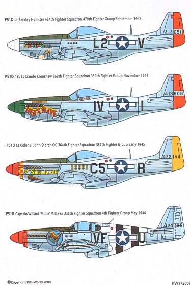 Kits-World - 1/72 North-American P-51B/North-American P-51D Mustang Serial Numbers, Squadron Code Letters, Kill Markings etc. For Natural Metal aircraft
