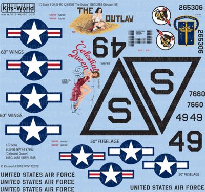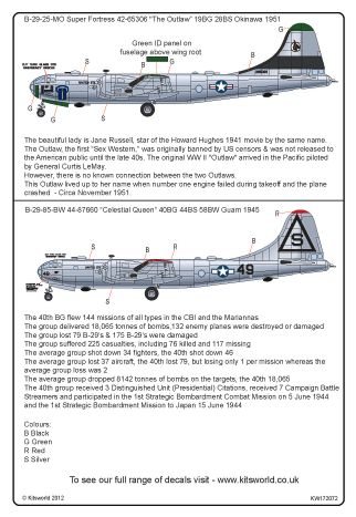 Kits-World - 1/72 Boeing B-29-25-MO Super Fortress 42-65306 'The Outlaw' 19BG 28BS Okinawa 1951 B-29-85-BW 44-87660 Celestial Queen 40BG 44BS 58BW 1945