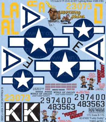 Kits-World - 1/72 Boeing B-17F-20-DL Flying Fortress 42-3073 'Lightning Strikes' 410BS 91BG B-17G-45-BO 42-97400 (44-83563) 'Fuddy Duddy' 708BS 447BG