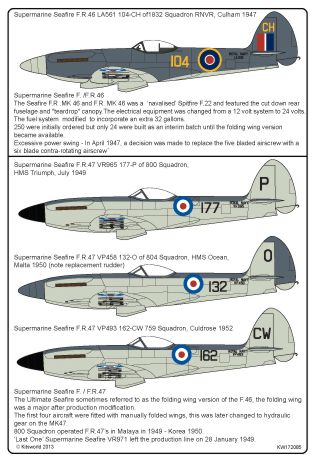 Kits-World - 1/72 Supermarine Seafires MK.XVII, Mk.46, Mk.47, Squadrons: 736 - 759 - 766 -800 - 804 - 1832 - 1833.