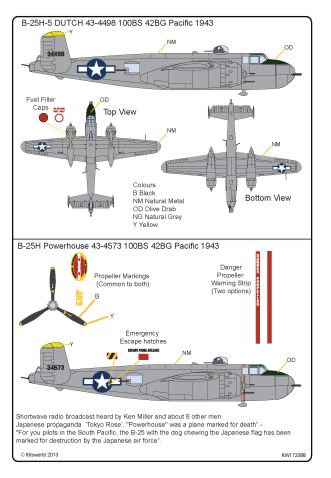 Kits-World - 1/72 Scale North-American Mitchell B-25H-5 43-4573 'Power House' 100BS 42BG Pacific 1943. Mitchell B-25H-5 43-4498 'Dutch' 100BS 42BG Pacific 1943