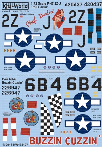 Kits-World - 1/72 Republic P-47D Thunderbolt 44-20437 2Z-J 'Phil Darlin' Lt Robert E. Wagner 405th FG 9th AF - P-47D-27 42-26947 6B-4 'Buzzin Cuzzin' Lt. Richard P. Sulzbach, 350th FG 346th FS 12AF