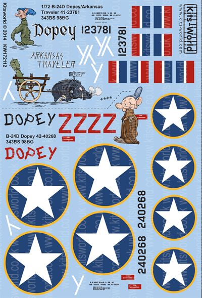 Kits-World - 1/72 Scale Consolidated B-24D-5-CO 41-23781 'Dopey'/'Arkansas Traveler' (version I) 343BS 98BG Libyan desert 1942 1943