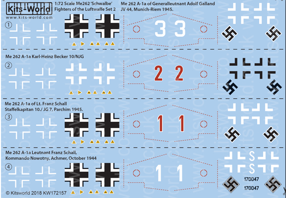 Kits-World - 1/72 Messerschmitt Me-262A-1a of Generalleutnant Adolf Galland, JV 44, Munich-Riem 1945.