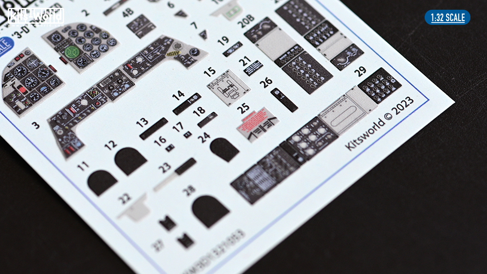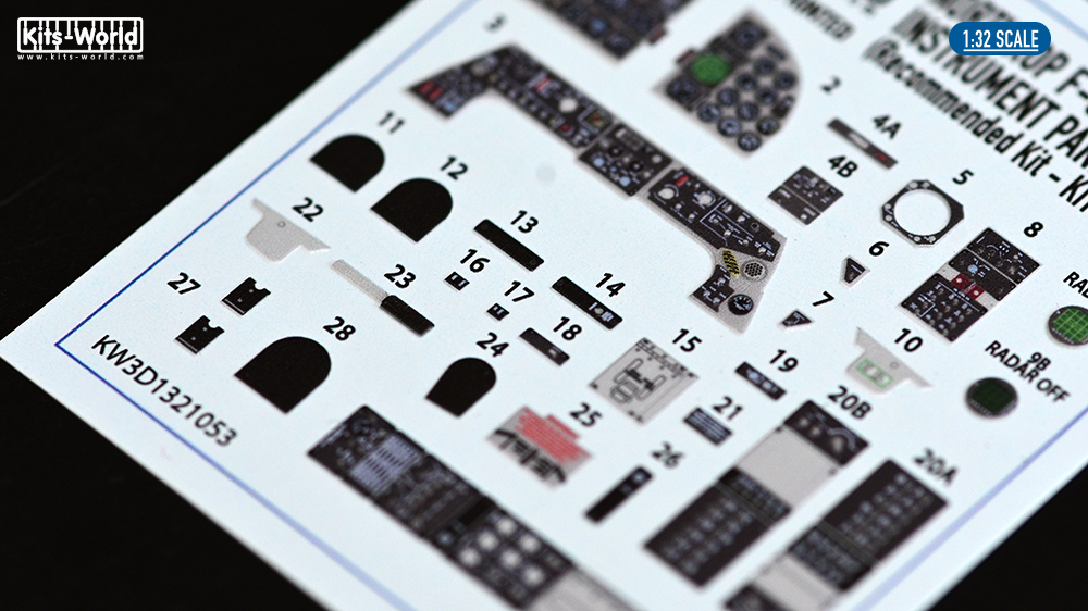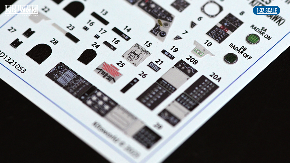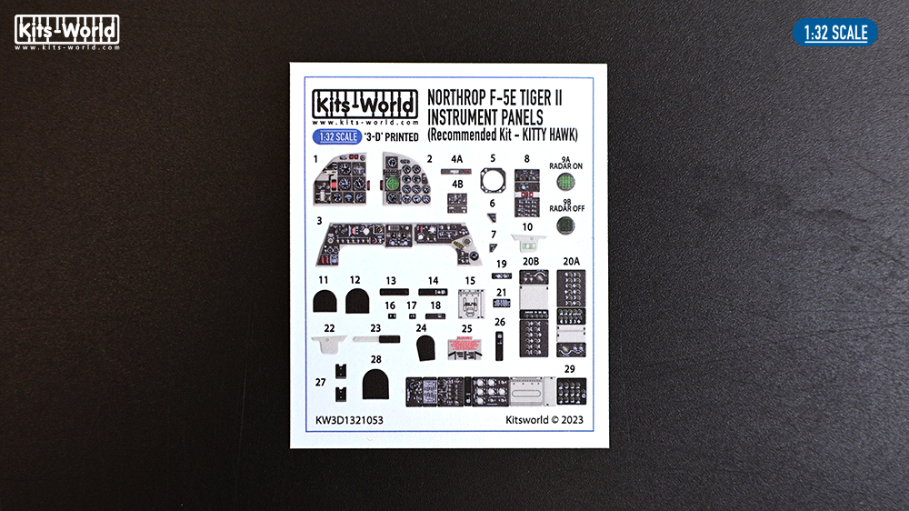 Kits-World - 1/32 Northrop F-5E Tiger II 3D cockpit decals for Kitty Hawk
