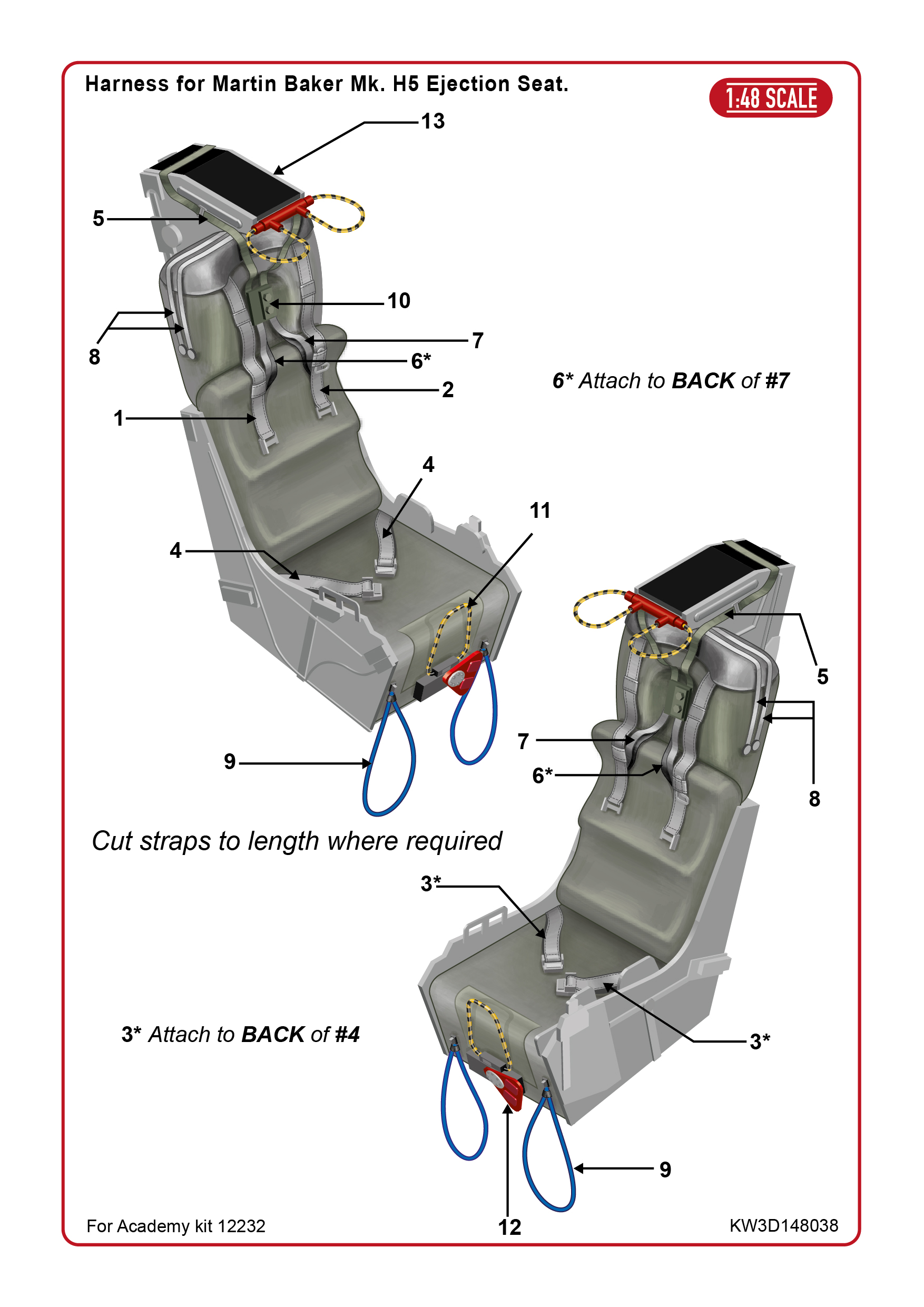 Kits-World - 1/48 McDonnell F-4B Phantom II seat-belt harness for Martin-Baker Mb Mk.H5 ejection seat for Academy kits