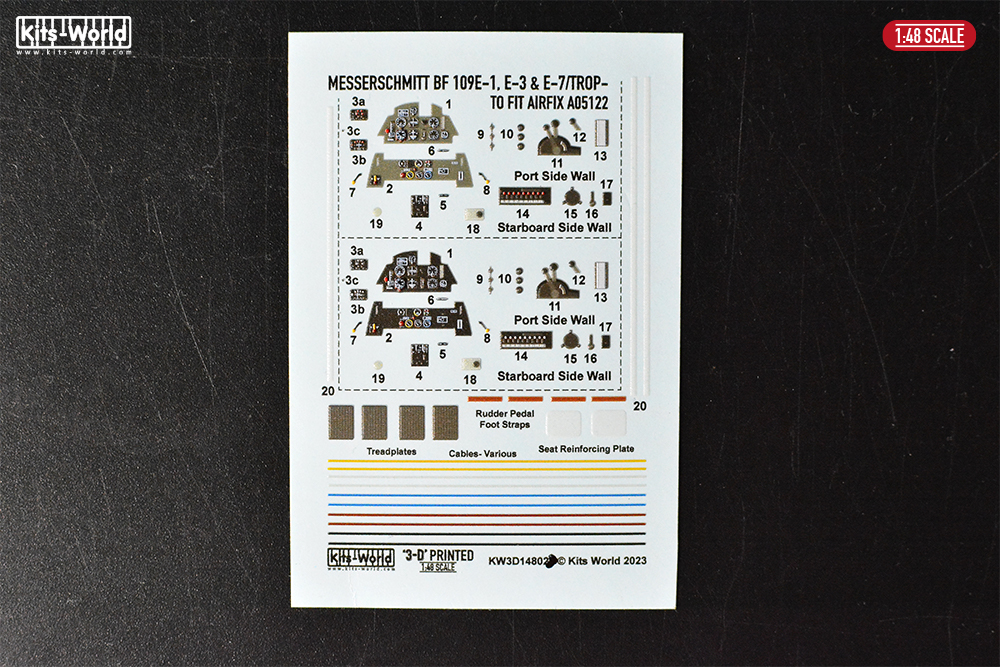 Kits-World - 1/48 Messerschmitt Bf-109E-1, Bf-109E-3, Bf-109E-7 Interior Detail Set (for Airfix AX05122 kits)