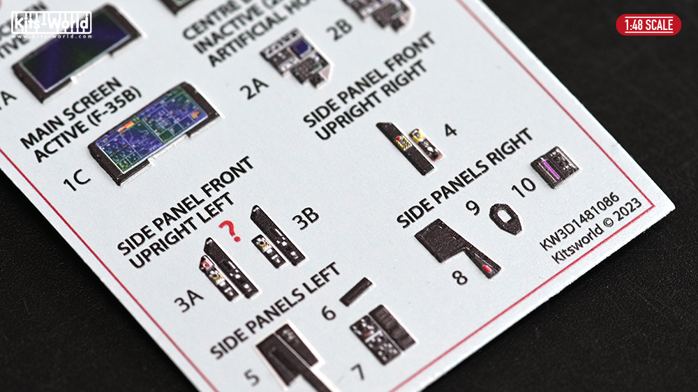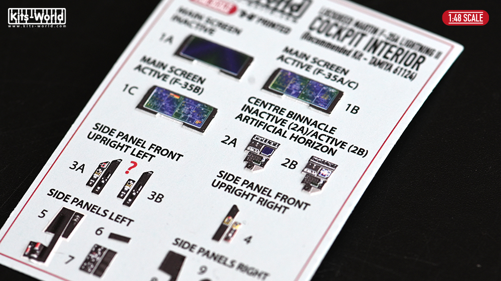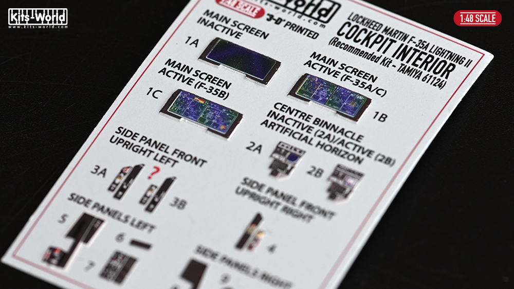 Kits-World - 1/48 3D Full colour Instrument Panels Lockheed-Martin F-35A, F-35B, F-35C Lightning screens off/ active (for Tamiya TA61124 kits)