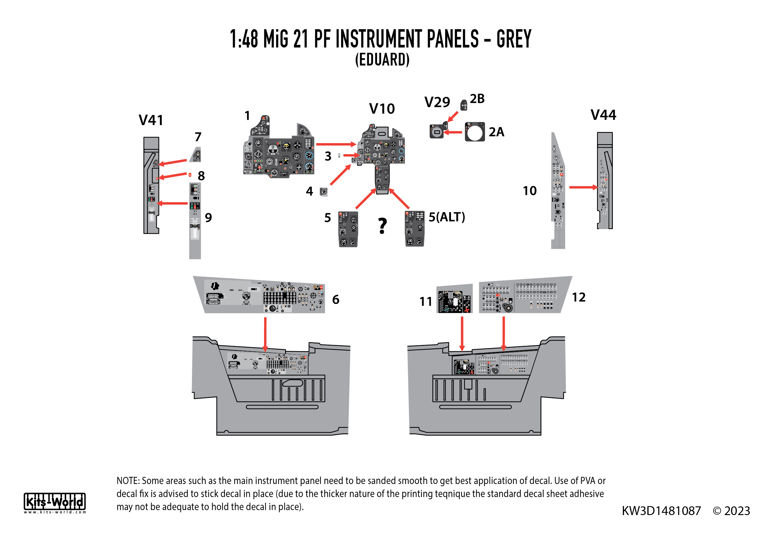 Kits-World - 1/48 Mikoyan MiG-21PF 3D-Printed cockpit interior for Eduard