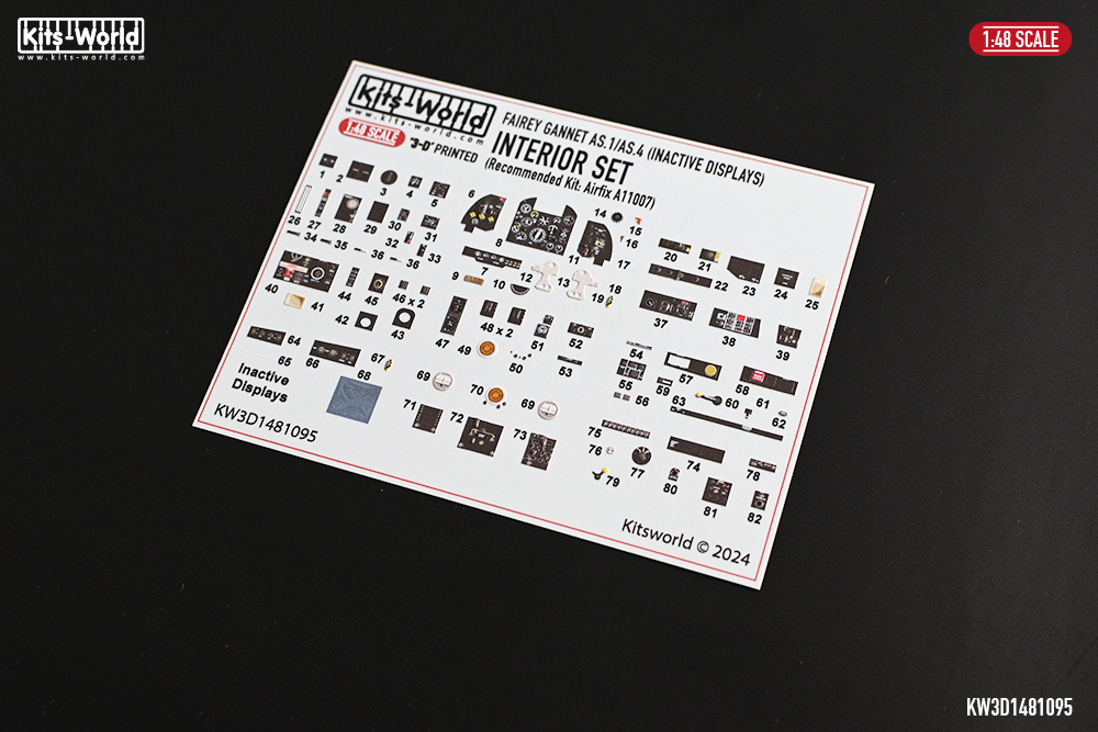 Kits-World - 1/48 Fairey Gannet AS.1/AS.4 Inactive Display cockpit interior detail set for Airfix