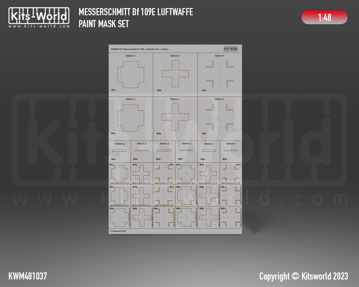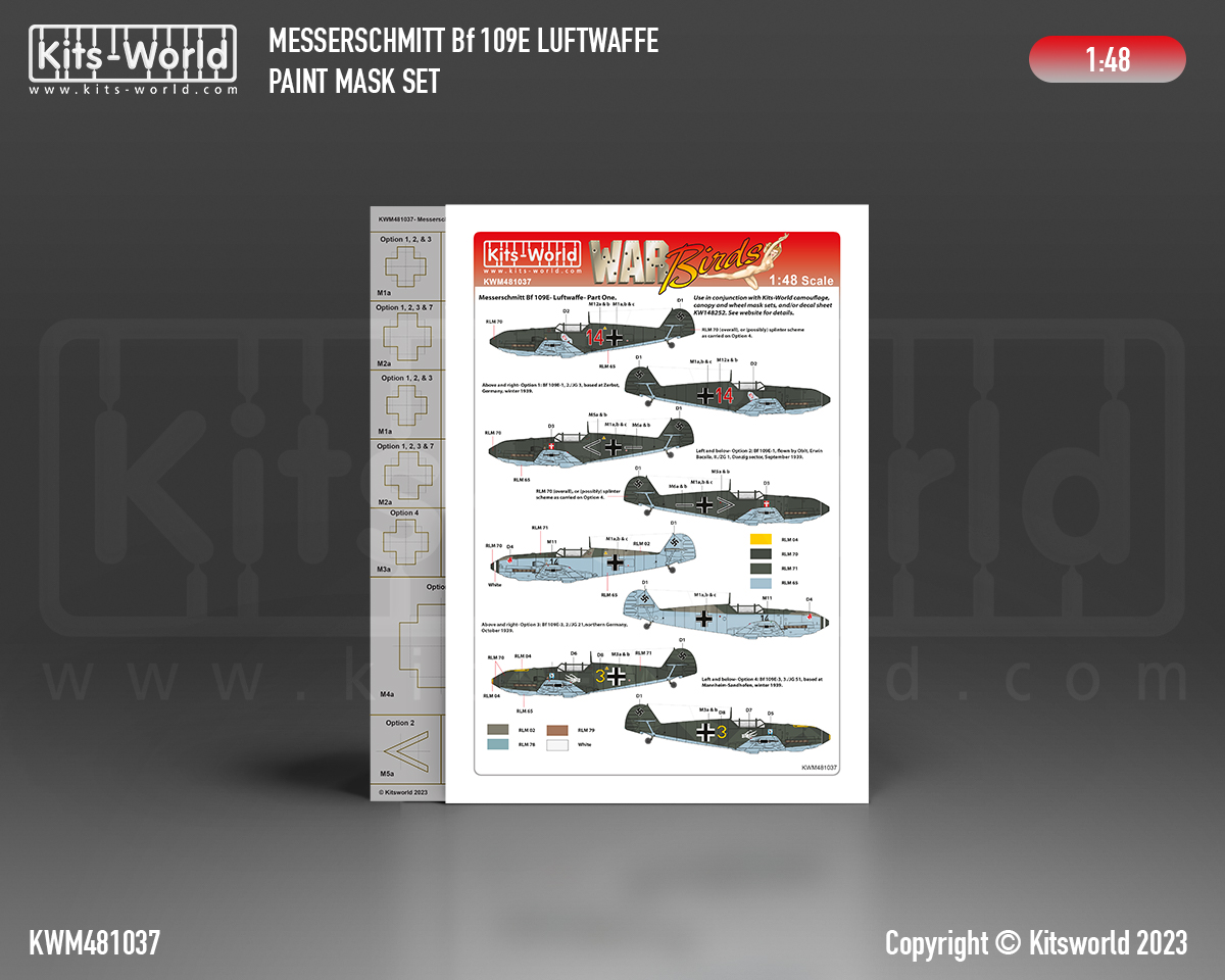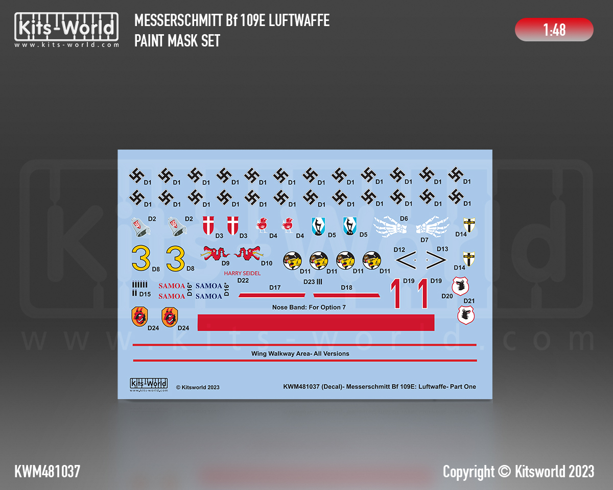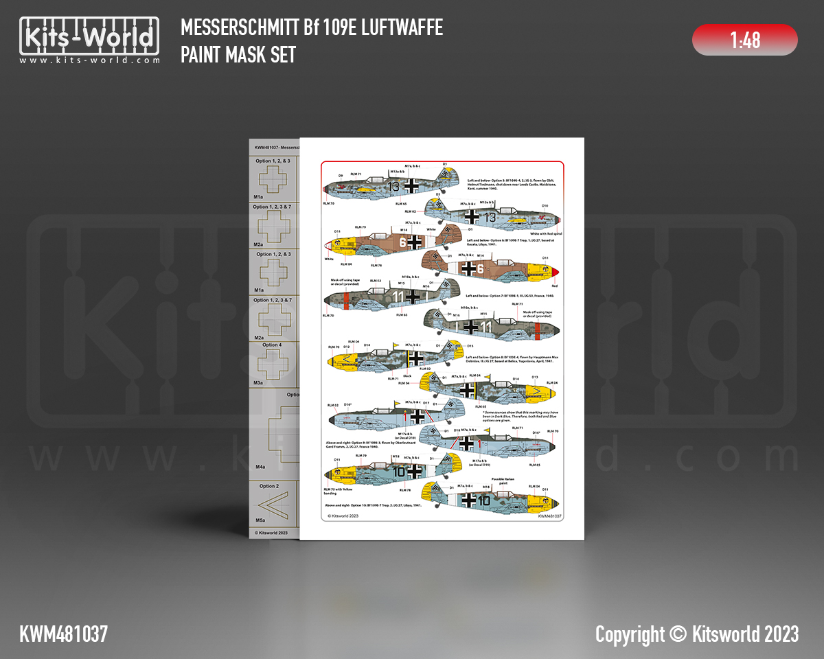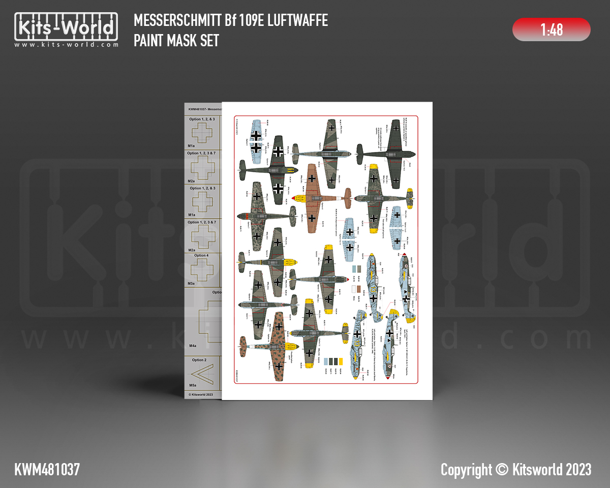 Kits-World - 1/48 Messerschmitt Bf-109 Luftwaffe Part one Stencil Mask And Decal set