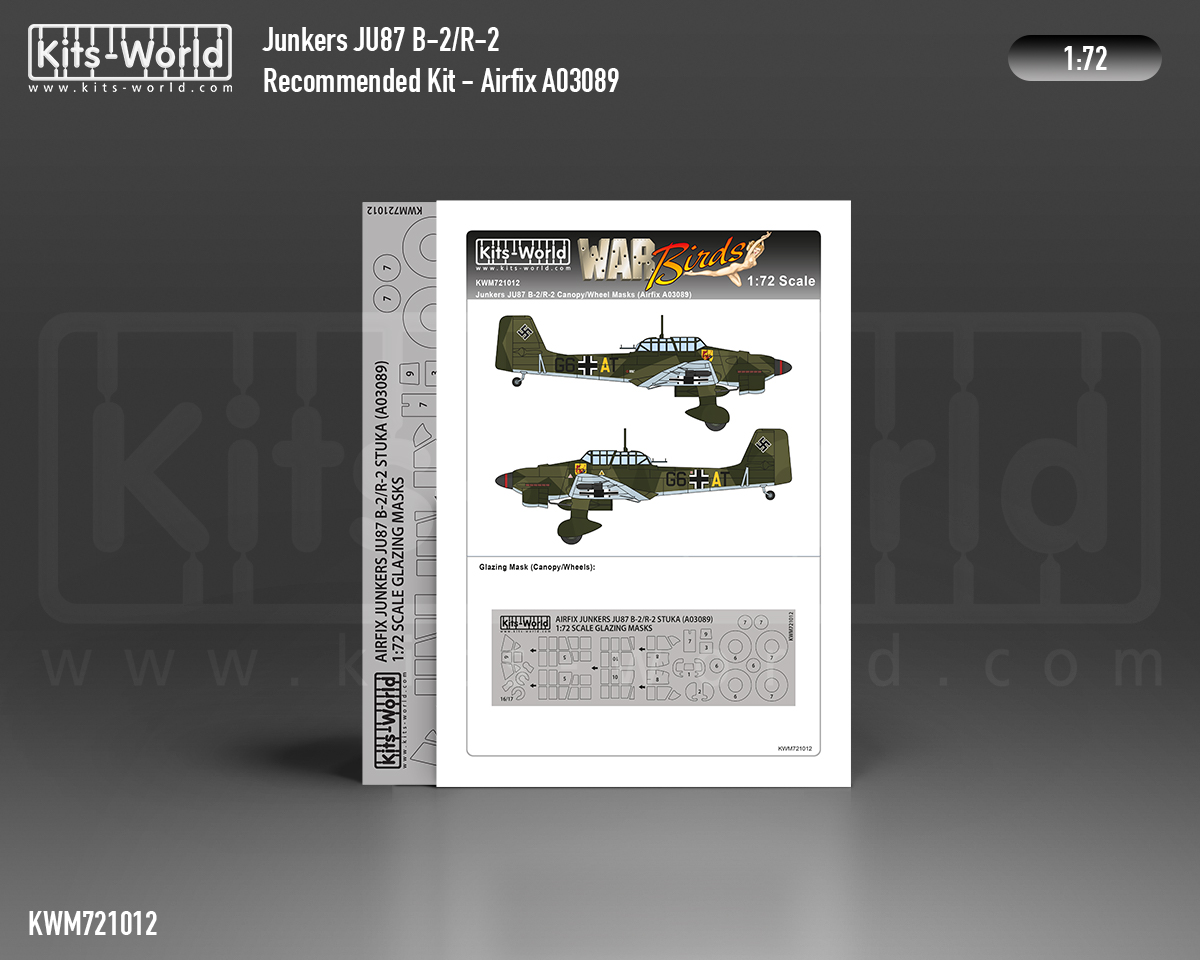 Kits-World - 1/72 Junkers Ju-87B-2/R-2 'Stuka' wheels and canopy paint mask outside only (for Airfix AX3089 kits)