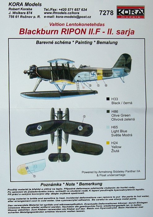 Kora Model - 1/72 Blackburn R.29 Ripon II F II.Sarja (Float)