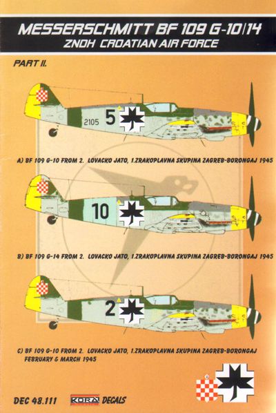 Kora Model - 1/48 Scale Messerschmitt Bf 109G-10/G-14 (ZNDH Croatian AF) (for Hasegawa, Fujimi, Hobby Craft and Academy kits)