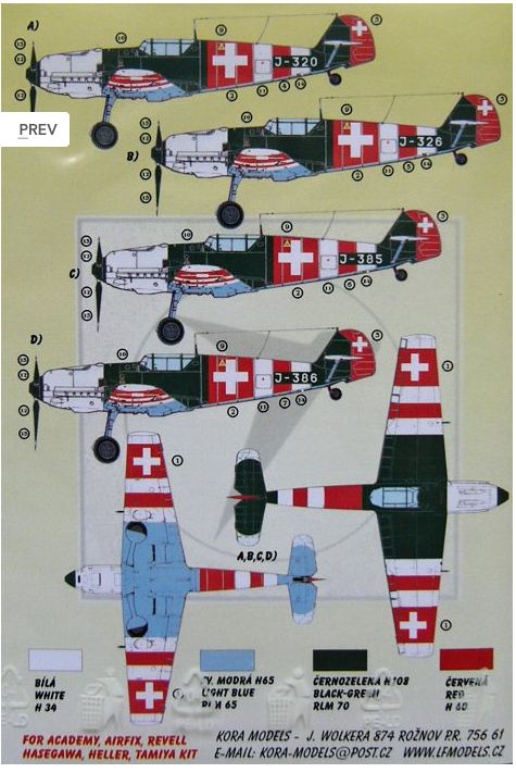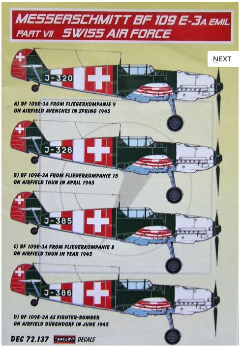 Kora Model - 1/72 Decals Bf 109 E-3A Emil Part VII (Swiss AF)