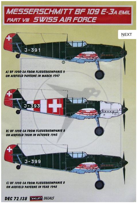 Kora Model - 1/72 Decals Bf 109 E-3A Emil Part VIII (Swiss AF)