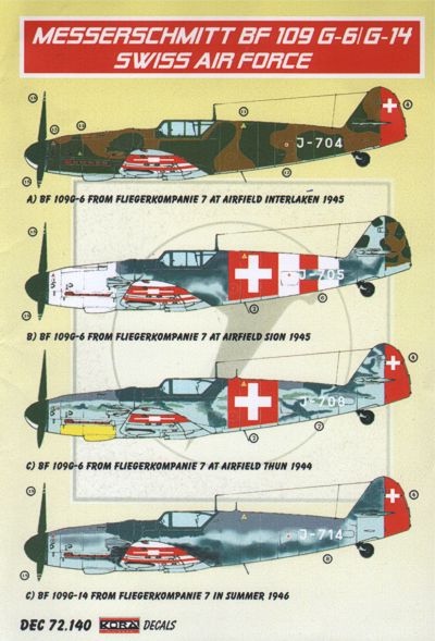 Kora Model - 1/72 Messerschmitt Bf-109G-6/Bf-109G-14 (Swiss Air Force) (for Academy, Fine Molds, Hasegawa and Italeri kits)