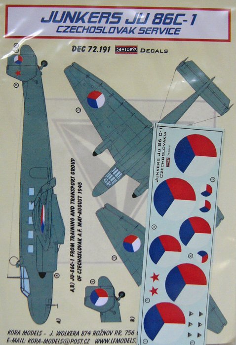 KORA MODEL - 1/72 Decals Ju-86C-1 Czechoslovak service (ITAL)