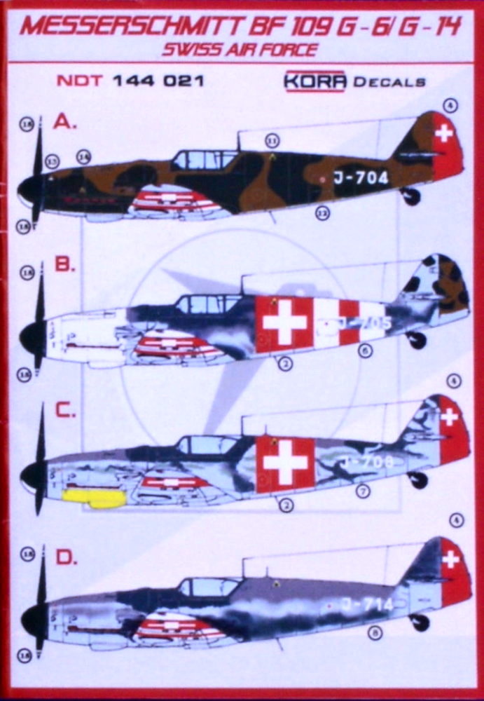KORA MODEL - 1/144 Decals Bf 109G-6/G-14 Swiss Air Force