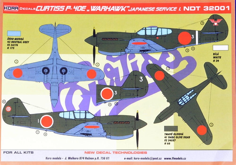 KORA MODEL - 1/32 Decals Curtiss P-40E Japanese Service Part 1