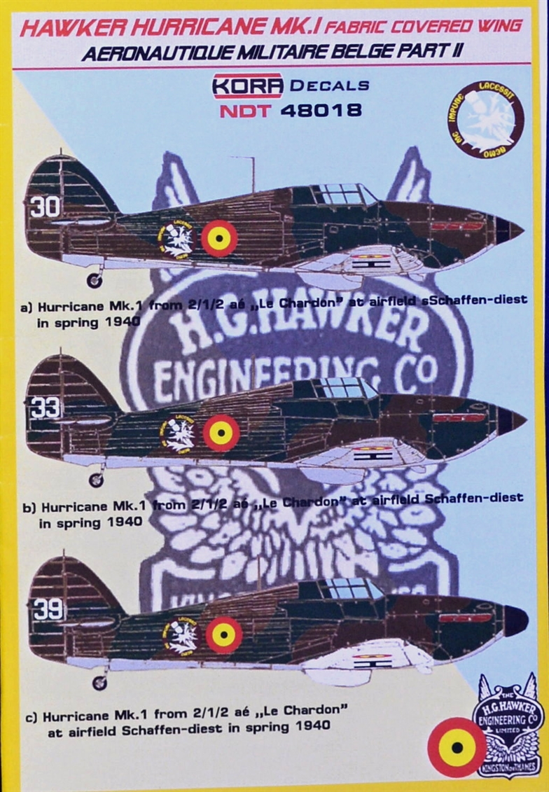 KORA MODEL - 1/48 Decals Hawker Hurricane Mk.I Belgium Part 2