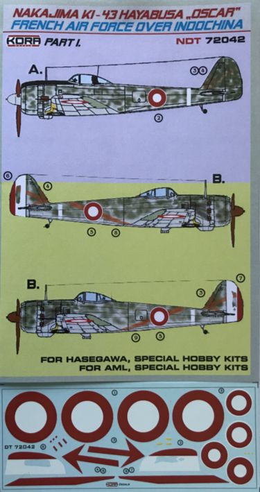 KORA MODEL - 1/72 Decals Ki-43 Oscar French AF Indochina Pt.1