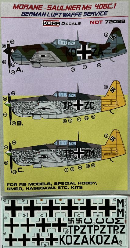 KORA MODEL - 1/72 Decals MS 406C.1 German Luftwaffe Service