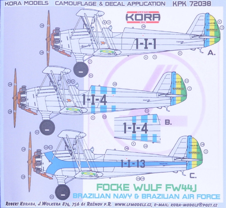 Kora Model - 1/72 Fw-44J Stieglitz Brazilian Navy/AF (4x camo)