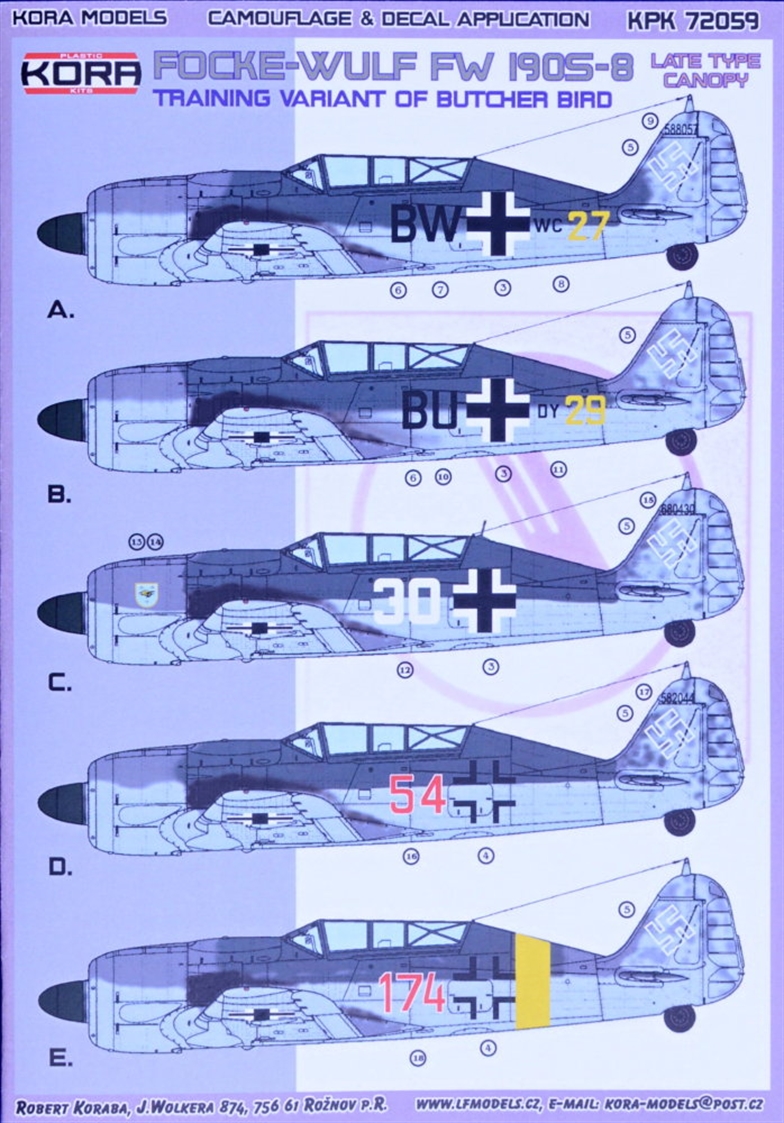 Kora Model - 1/72 Focke-Wulf Fw-190S-8 German late canopy type Complete plastic kit (Eduard) with decals, vacu canopy and photo-etched parts