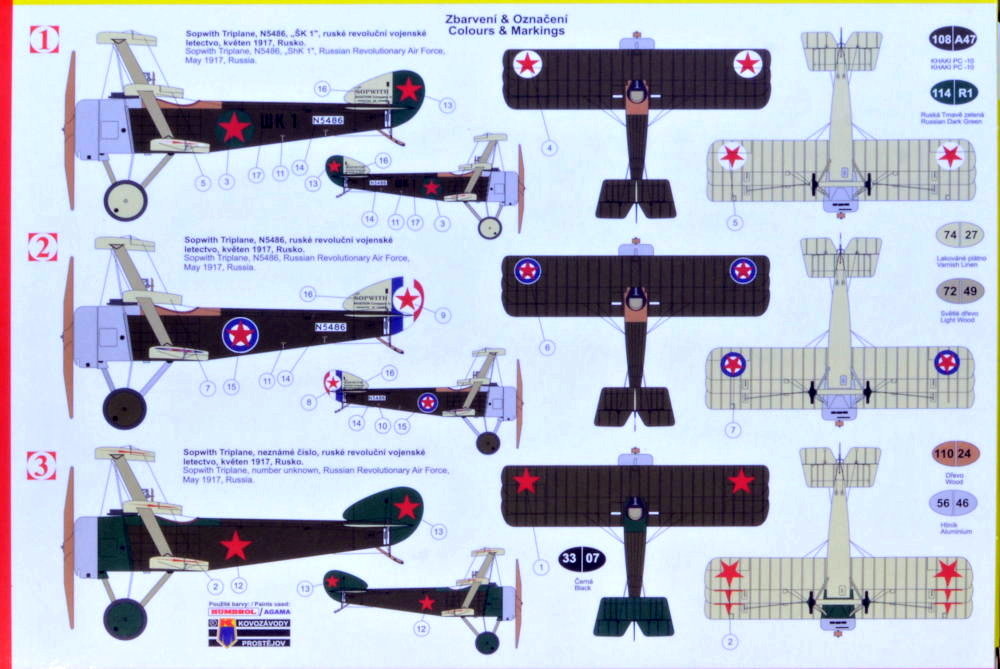 KOVOZAVODY PROSTEJOV - 1/72 Sopwith Triplane in Russian service (3x camo)