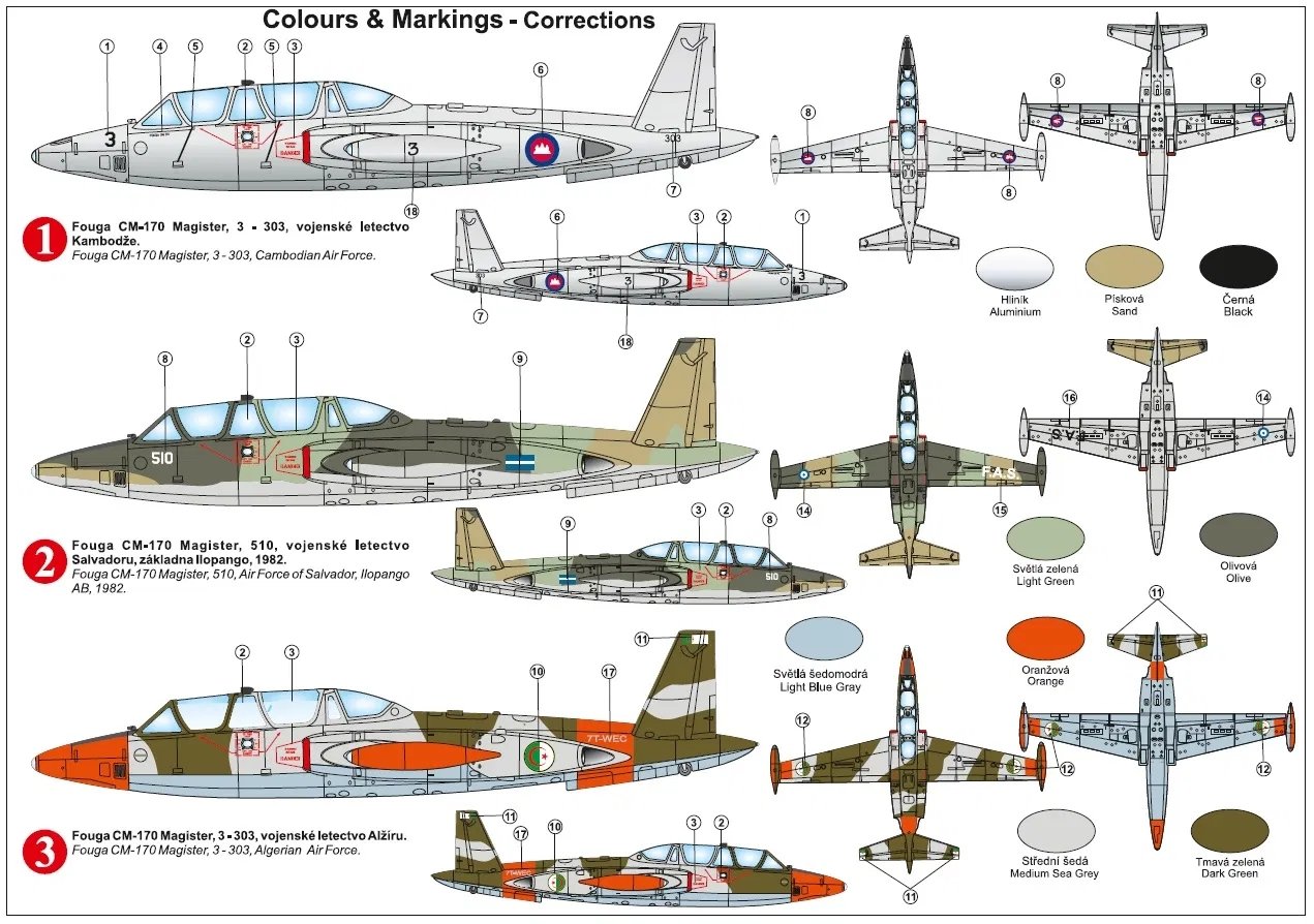Kovozavody Prostejov - 1/72 Fouga CM-170 Magister 'Other Services' Cambodian Air Force, Air Force Of Salvador, Algerian Air Force