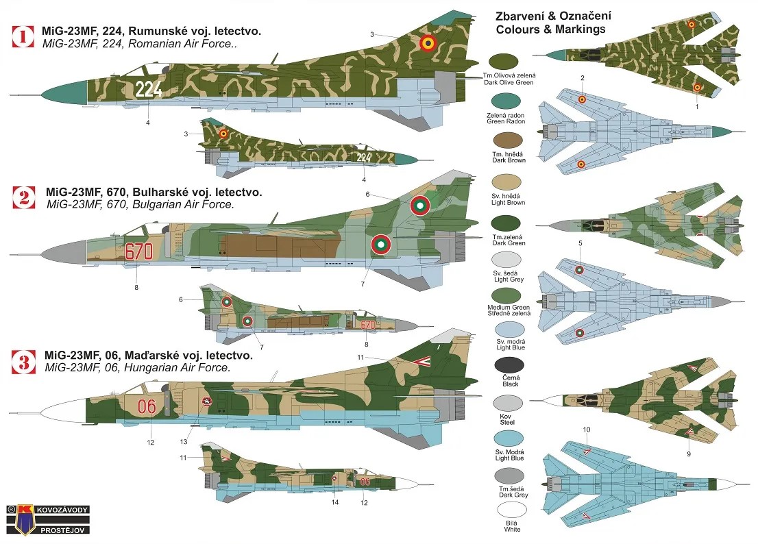 KOVOZAVODY PROSTEJOV - 1/72 MiG-23MF Danubian Floggers (3x camo)