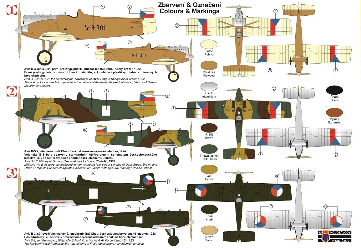 KOVOZAVODY PROSTEJOV - 1/72 Avia B-3 Bull Military (3x camouflages)