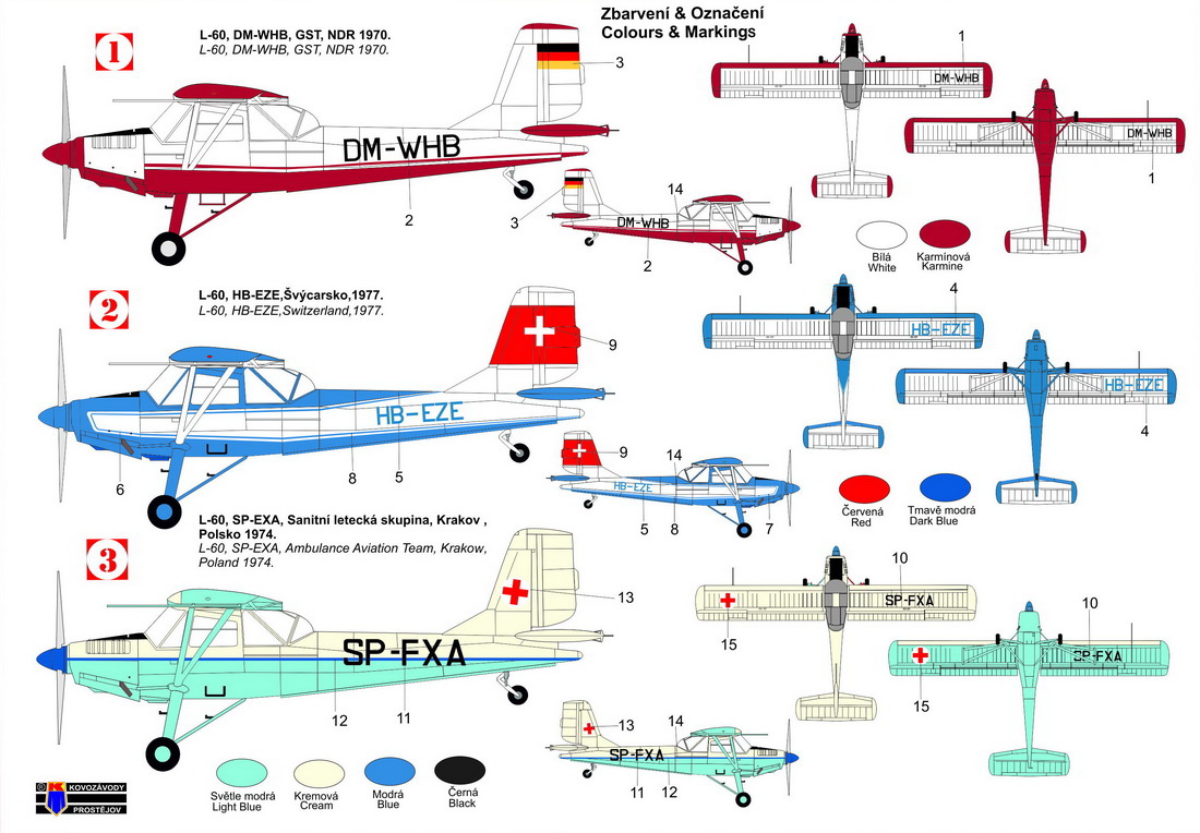 KOVOZAVODY PROSTEJOV - 1/72 Let L-60 Brigadyr Export (3x camouflages)