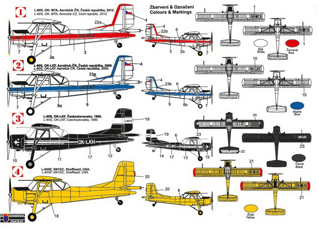 KOVOZAVODY PROSTEJOV - 1/72 Let L-60S Brigadyr (4x camouflages)