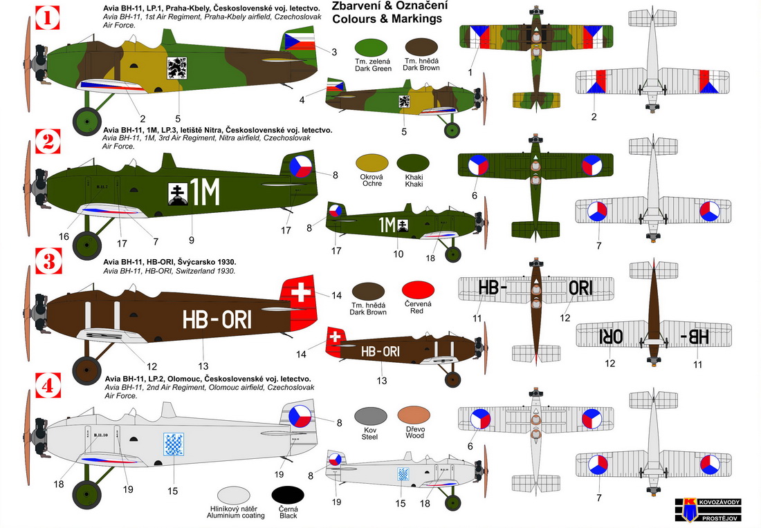 KOVOZAVODY PROSTEJOV - 1/72 Avia BH-11 Boska (4x camouflages)