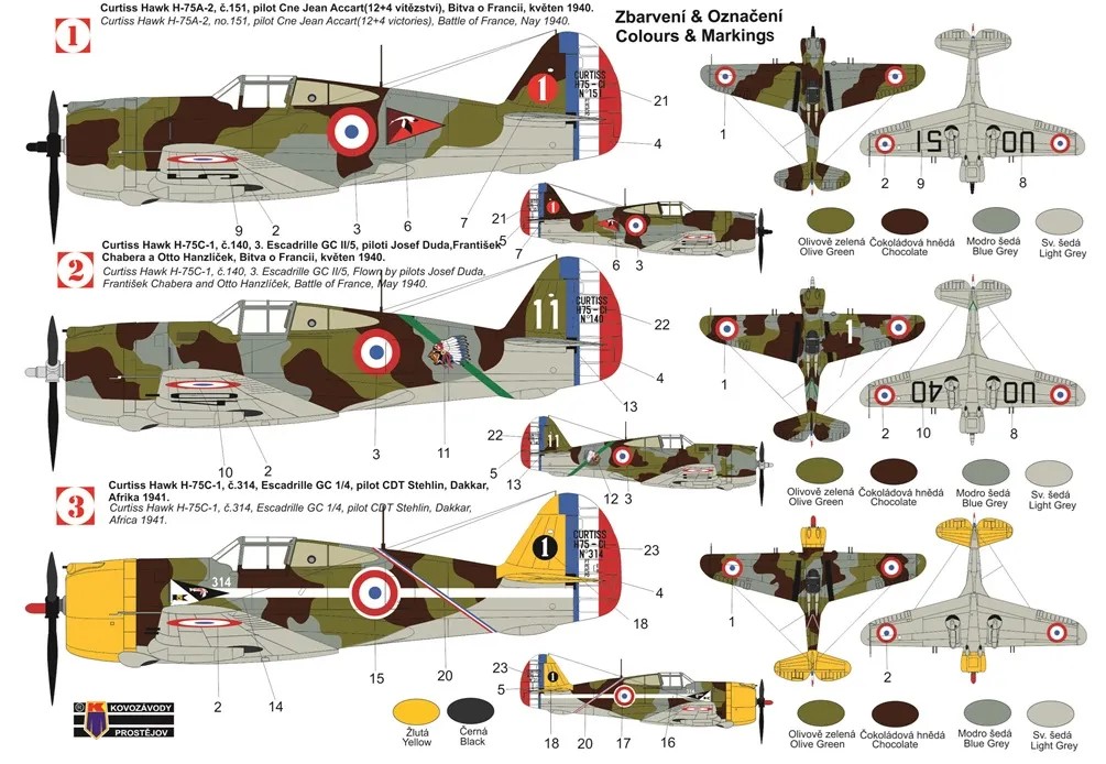 KOVOZAVODY PROSTEJOV - 1/72 Curtiss Hawk H-75C-1 3x camouflages