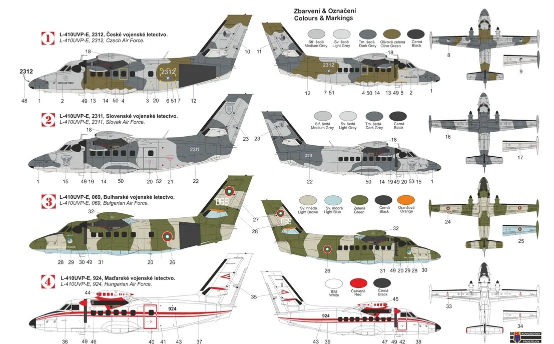KOVOZAVODY PROSTEJOV - 1/72 LET L-410 UVP Turbolet Military 4x camouflages