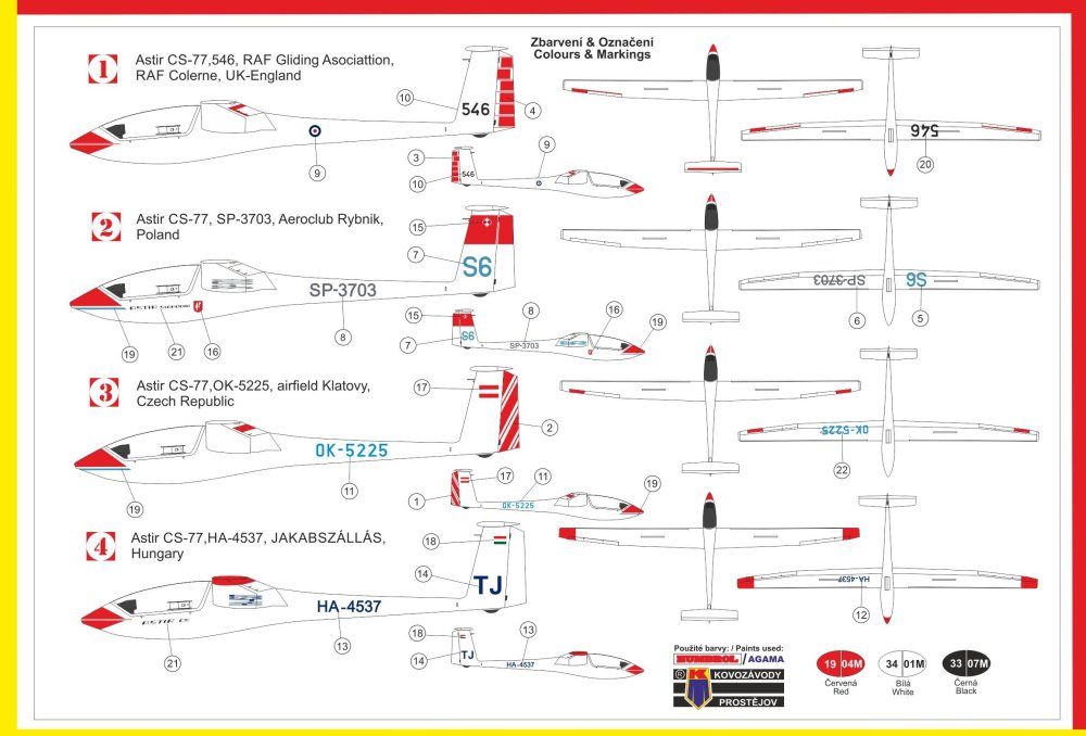KOVOZAVODY PROSTEJOV - 1/72 Astir CS-77 4x camouflages