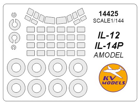 KV Decals - 1/144 Ilyushin IL-12 / IL-14P canopy paint mask And wheel paint mask masks (for A-MODEL and Eastern Express kits AMU1416, AMU1443, AMU1444, AMU1445, AMU1447)