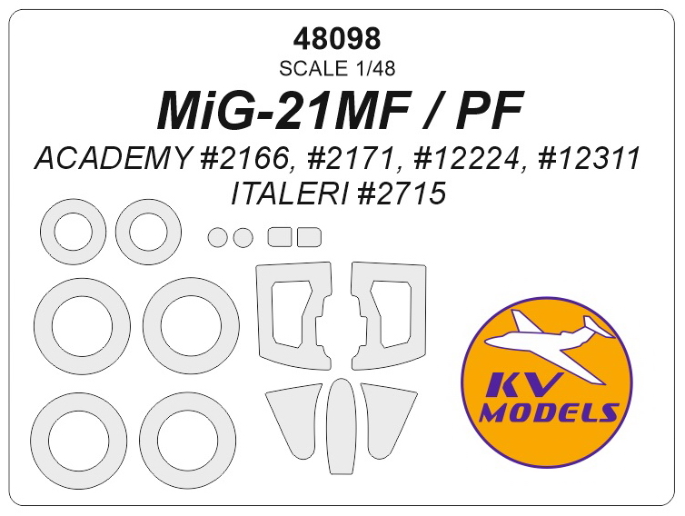 KV Decals - 1/48 Mikoyan MiG-21MF / Pf + wheels masks for Academy kits ACA2166, ACA2171, ACA12224, ACA12311 and Italeri kit IT2715